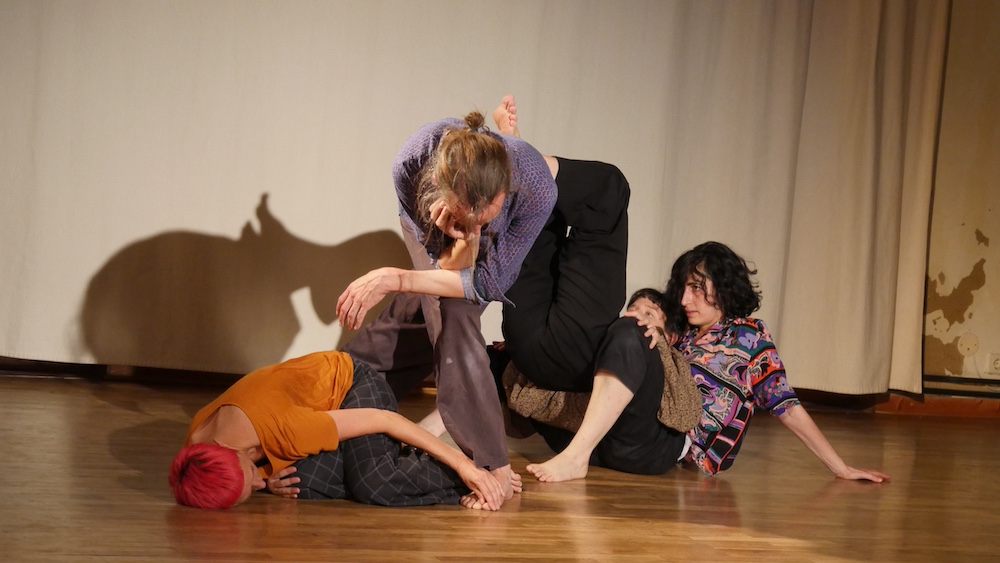 22 June 2017, group improvisation performance of the teachers at Bucharest Contact Improvisation Festival, with Steven Batts, Inna Falkova, Elisa Ghion, Sergey Golovnya, Susanne Martin, Virginia Negru, Adrian Russi, Alexandra Soshnikova, venue: CNDB (Centrul Național al Dansului Bucuresti)